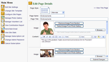 Here is an example of editing the details (or content) of a page on your site. This